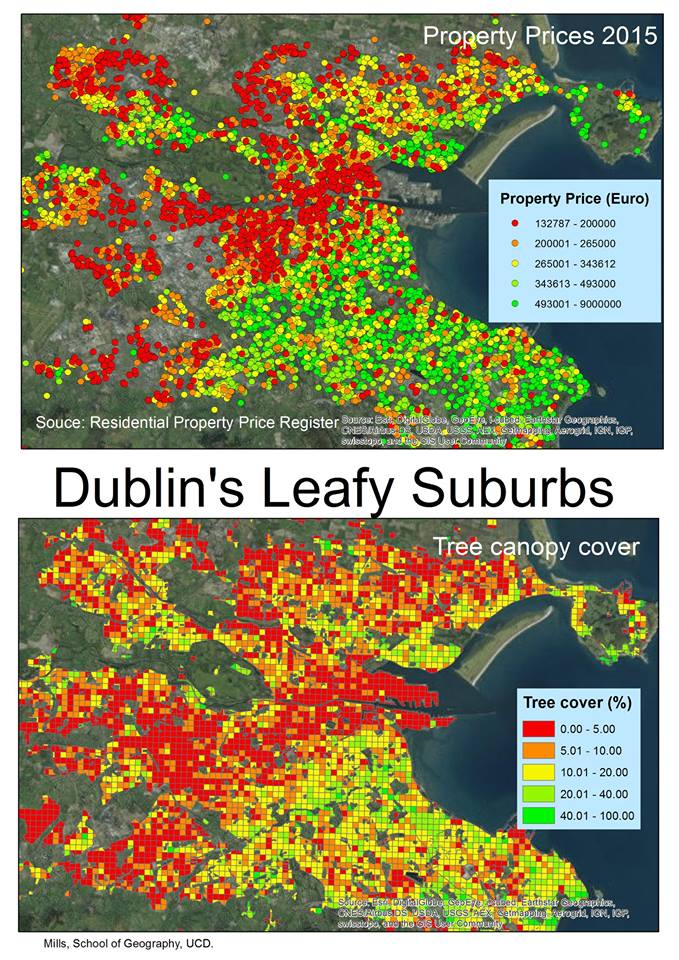 A common phrase that conveys affluence in Dublin is ‘leafy suburb’, which describes parts of the city that are relatively wealthy and endowed with luxuriant vegetation. Does, the phrase have any basis in fact?
