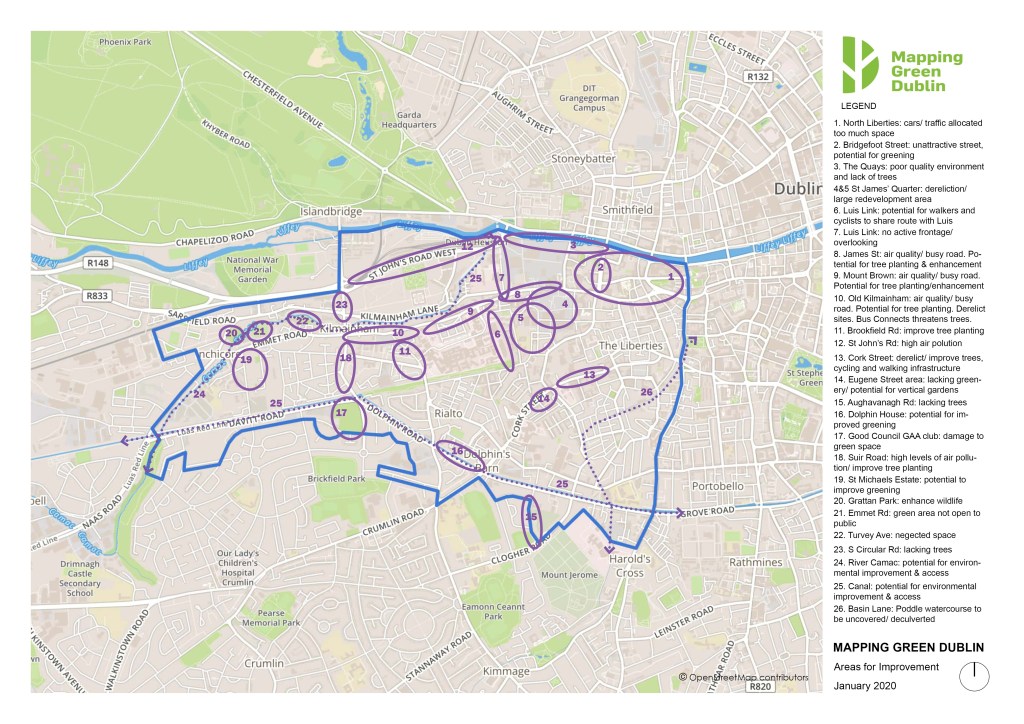 Two maps (below) were developed to synthesise the discussions and illustrate clearly defined areas for improvement that match with areas believed to have strong greening/ecological value for the community. This focus group work resulted in a number of themes that informed the planning and preparation for the community launch event.