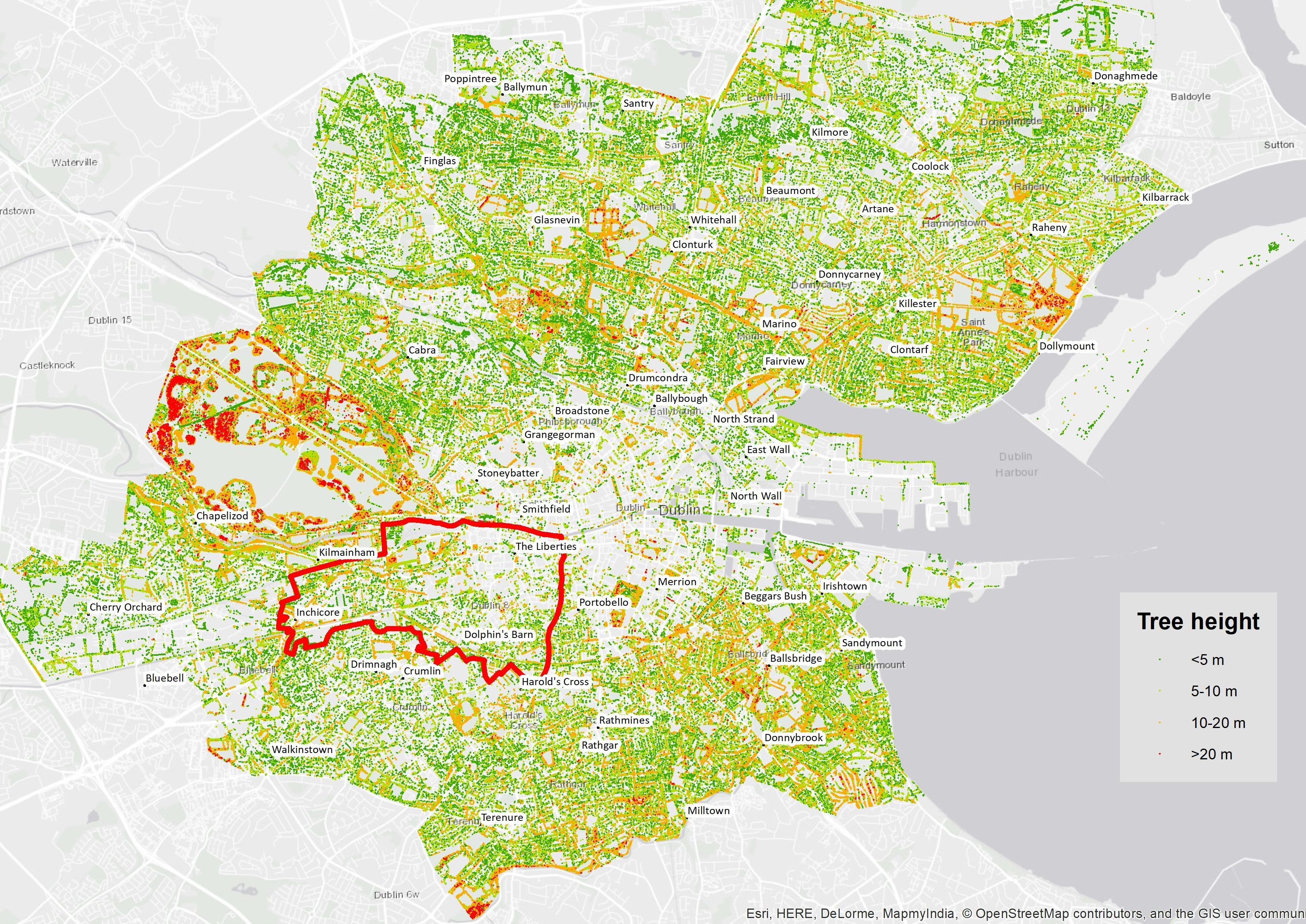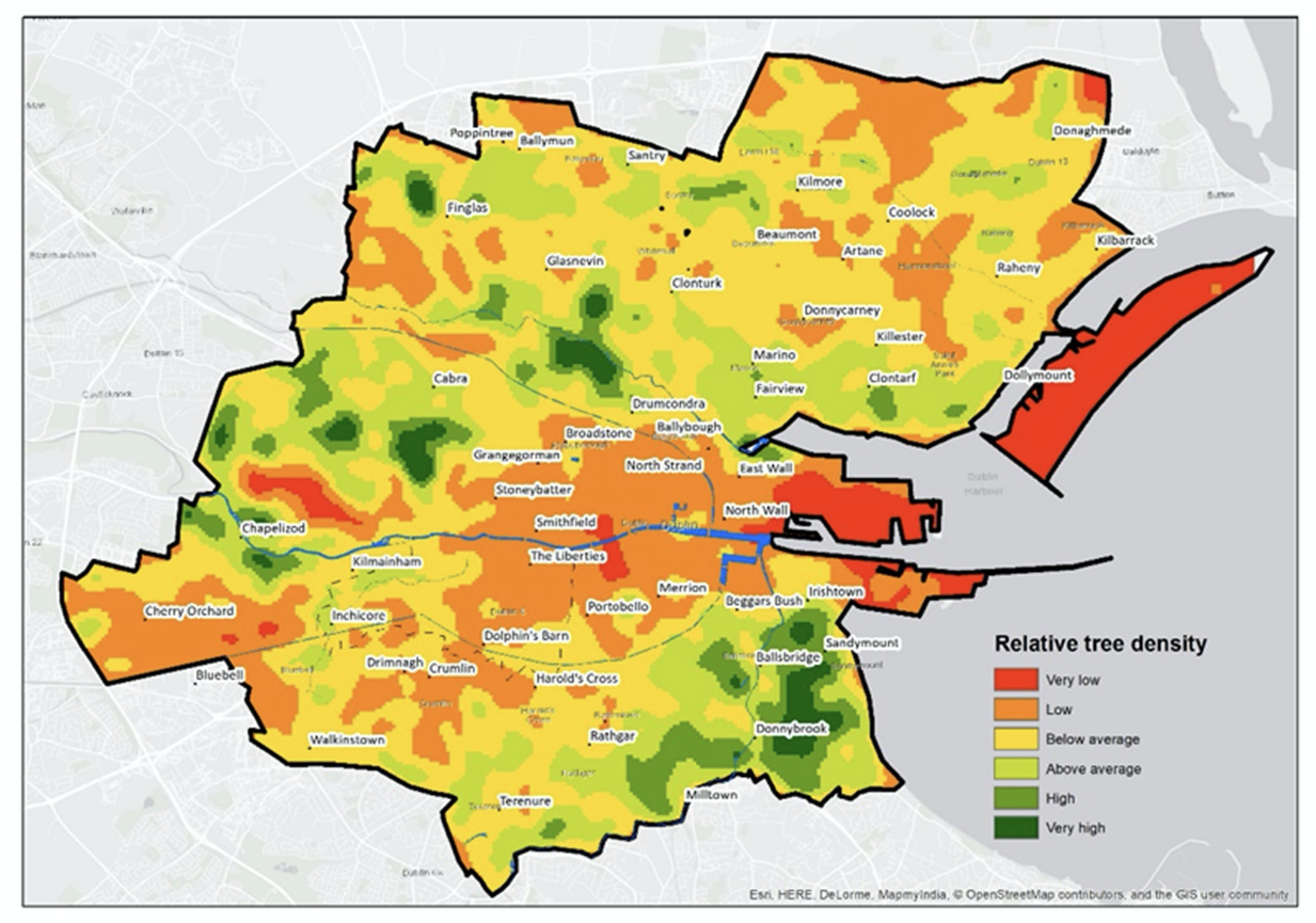 - The neighbourhoods of highest tree density are in Donnybrook and Clontarf near the coast and around Phoenix Park.